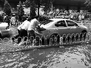 31处道路积水中,昨天“刷屏”的是昌平区回龙观育知东路城铁桥下,深达2米的积水无论车还是人都寸步难行。为排除积水,回龙观镇启用了4台水泵强力抽水,将水排至二排干河道,再排入沙河,以缓解桥区的积水压力。
