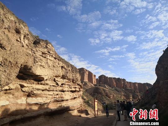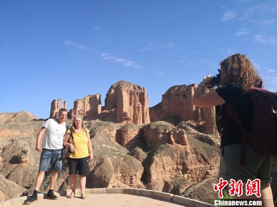 图为国外游客专程来中国张掖一睹冰沟丹霞“圣容”。 魏建军 摄