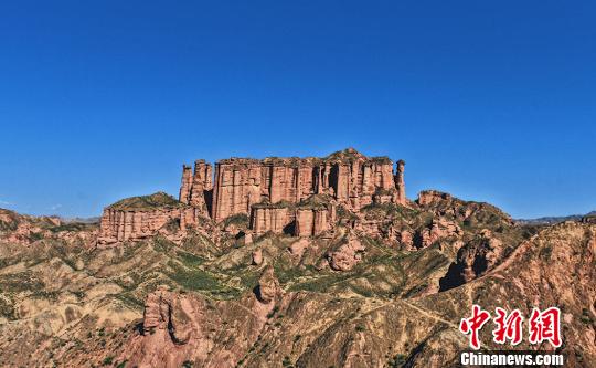 图为冰沟丹霞“卢浮魅影”景点,因其轮廓清晰酷似巴黎卢浮宫而知名中外。 韦德占 摄