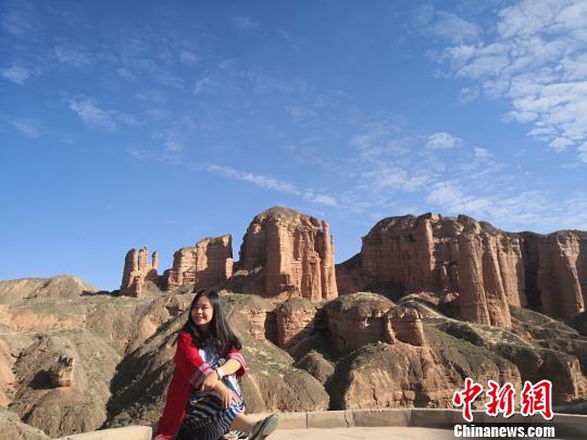 图为游客在冰沟丹霞景区内留影。 魏建军 摄