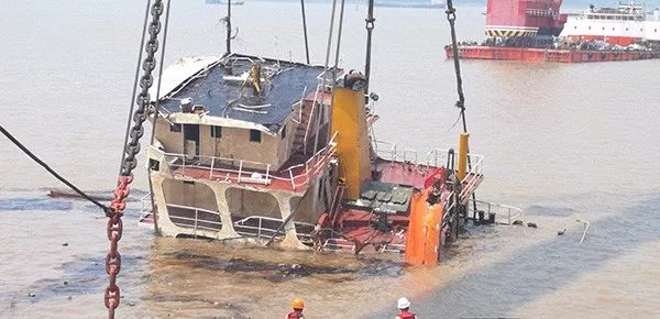 △“顺强2”轮被吊出水面(上海海事局 供图)