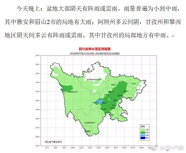 据四川气象台预计,今天白天到晚上,盆地大部阴天有小到中雨:
