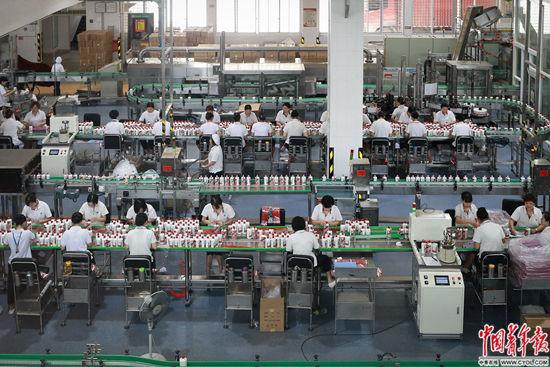 贵州省茅台镇一家知名白酒厂,工人封装酒瓶。茅台、五粮液、国窖等数千家酒企聚集在赤水河沿岸。