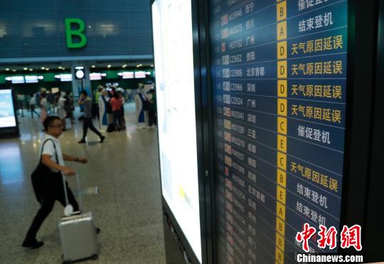 台风“云雀”造成上海两大机场部分航班延误。 汤彦俊 摄
