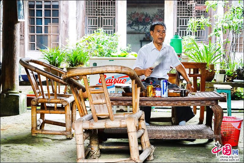 走进街上的一户人家,两个老人在看电视节目,一只猫在他们脚下打盹,这对老人所住的房子是20多年前5000块买下的,四合院式的院落有200多平,天井、阁楼、堂屋、灶间等布局还保留,炎炎夏日里,老奶奶说,空调风扇都不曾用过,风穿堂而过,凉爽舒适,孩子们都不在这里居住了,两个老人已是习惯了这份安静,并不打算搬走。