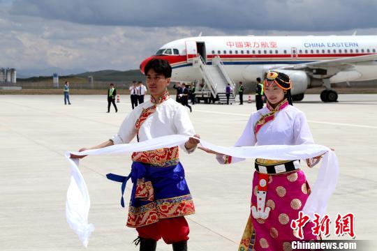 28日13时20分,东方航空CES5685航班由西宁飞抵青海海北祁连机场,标志着祁连机场正式竣工投运。 赵凛松 摄