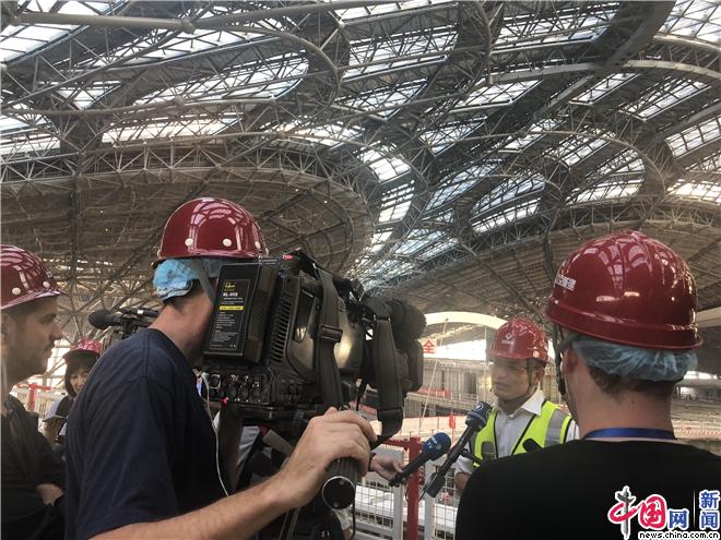 北京城建集团新机场建设副指挥兼航站楼项目经理李建华接受中外记者采访。中国网李智 摄