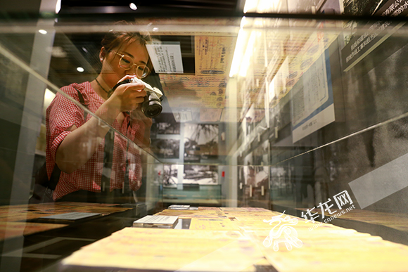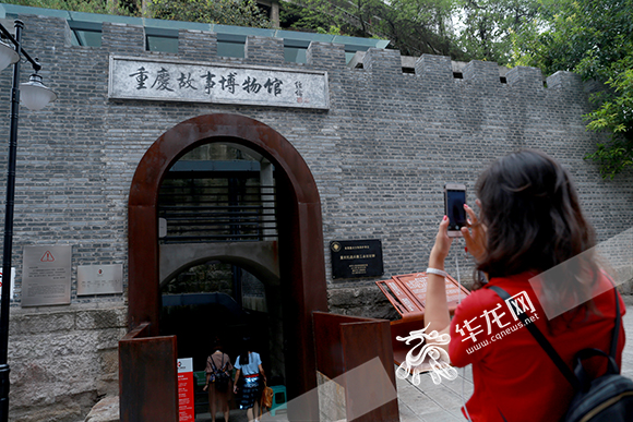 一名记者用手机记录重庆故事博物馆的照片。记者 谢鹏 摄