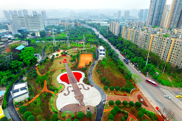 “高空有高压线,不可能建房子,想要在主城区内利用最大化,思来想去还是建成公园最好。这个公园对比其它公园不大,但主题特别,是全重庆唯一一家以‘音乐’为主题的公园,也惠及周边群众。”九龙坡城区管理局工作人员谭哲君笑谈,公园麻雀虽小五脏俱全,群众有休闲娱乐地,更宜居宜业。