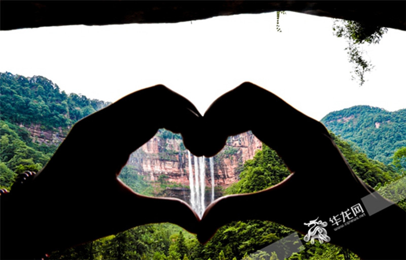 “天下第一眼”处比心。首席记者 雷其霖 摄