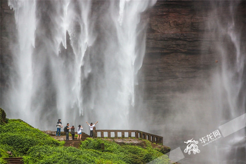 游客在望乡台瀑布前。首席记者 雷其霖 摄