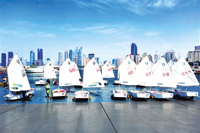 青岛奥帆中心前的帆船。王海滨摄(人民图片)