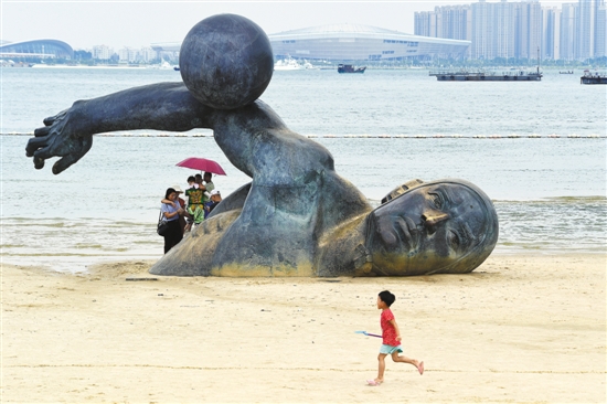 “百里嘉”对湛江影响不大,金沙湾海滨浴场昨天有许多市民在玩耍 羊城晚报记者 邓勃 摄