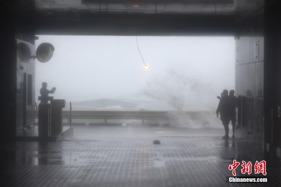 9月16日,强台风“山竹”逼近,香港天文台悬挂10风球及红色暴雨警告信号。香港坚尼地城海旁翻起涌浪。中新社记者 李志华 摄