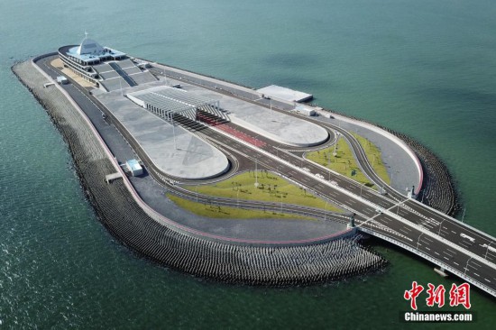 9月18日,强台风“山竹”吹袭香港过后,港珠澳大桥安然无恙。图为位于香港海域的港珠澳大桥东人工岛。中新社记者 李志华 摄