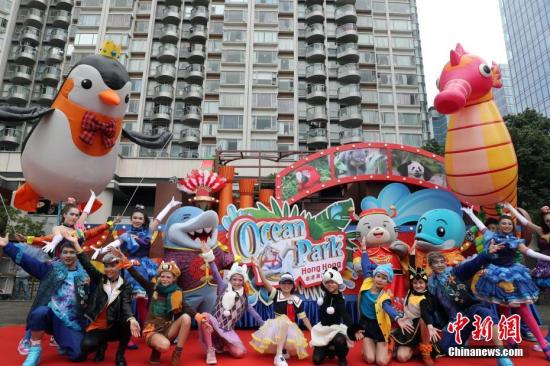 资料图:香港海洋公园花车亮相。中新社记者 洪少葵 摄