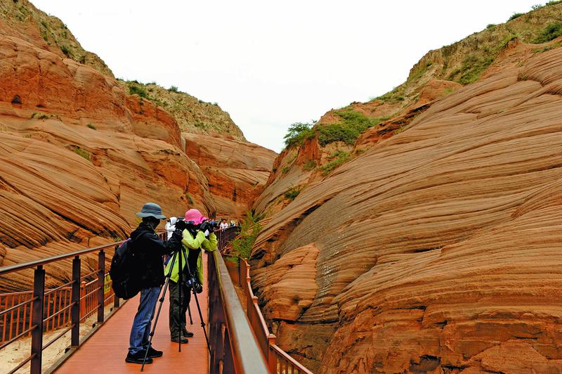 榆林市靖边县丹霞地貌自然景观区成为各地游客和摄影爱好者的旅游胜地。 本报记者 杜玮摄