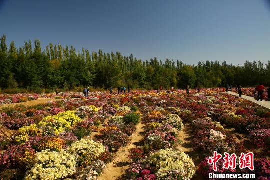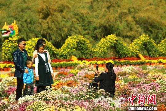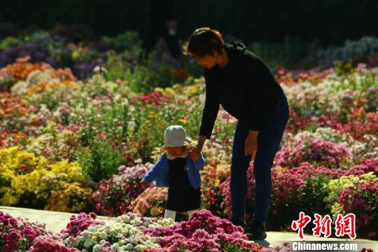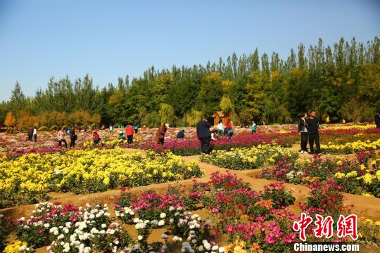 10月7日,国庆黄金周的最后一天,甘肃金昌市北环路防护林带的百菊苑里依旧游人熙攘。 陈兴明 摄