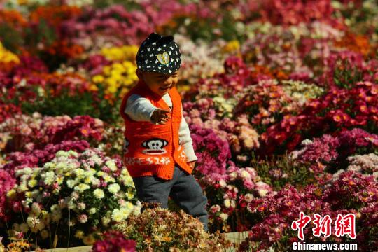 10月7日,国庆黄金周的最后一天,甘肃金昌市北环路防护林带的百菊苑里依旧游人熙攘,金黄后、墨王、麦浪、粉荷花等百余种菊花将戈壁小城“装扮”一新。在和熙的秋光里,游人“扶老携幼”,赏花观景。
