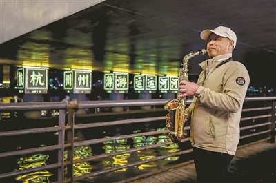 荣先生住在武林路上,每天吃完饭,必做的功课就是散步到运河边,把萨克斯拿出来,吹上一个多小时,“夏天这个点天还没黑透,河风凉凉地吹过来,老舒服了。”