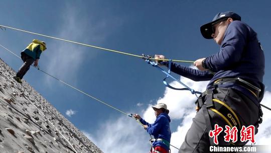 西藏将于今年11月1日开启新一轮“冬游西藏”活动,攀登雪山受游客青睐。图为游客在西藏学习登山技巧。 贡桑拉姆 摄