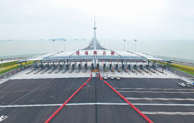 港珠澳大桥将于10月24日上午9时正式通车。今天,港珠澳大桥管理局发布了《港珠澳大桥通行指南》,对大桥路线、车辆通行、三地口岸通关、通行收费、安全保障、配套服务等方面进行了详细介绍。图为港珠澳大桥收费广场。