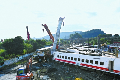台铁6432次普悠玛列车21日下午4时50分于宜兰苏澳新马车站出轨翻覆,全列车8节车厢全部出轨,多个车厢翻覆变形堆叠严重。22日凌晨5时12分,工程人员已抢通西线恢复单线双向行车。台湾铁路局表示,因为设备受损程度比较高,希望能在三天内完成东西双线的通行。