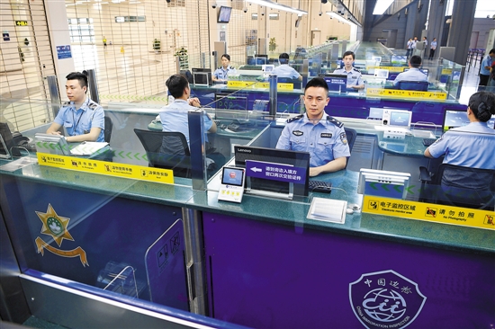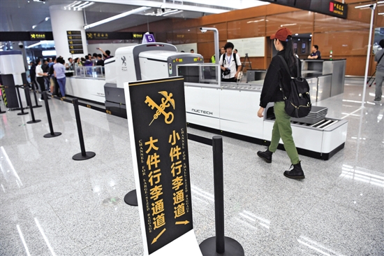 出境大厅共设有20条自助通关通道,旅客刷通行证卡、按指纹自助通关,通常最快8秒便可完成通关查验