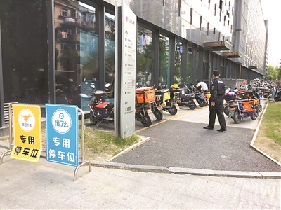 10月8日,运河上街外卖小哥的专用停车区域正式开始运行,面积约80平方米,周边设有醒目的指示牌,可一次性容纳近30辆送餐车集中停放。运河上街管理部门还专门派出了2名专职保安,在饭点高峰的时候,引导和督促外卖小哥们有序停车。