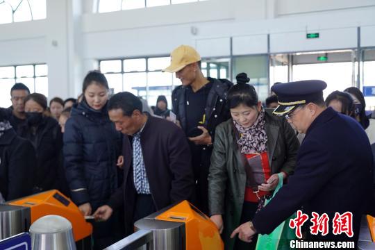 11月2日,青海西宁火车站乘客刷身份证进站乘车。图为西宁站工作人员指导旅客通过身份证识别区读取电子客票检票乘车。 姚雪皎 摄