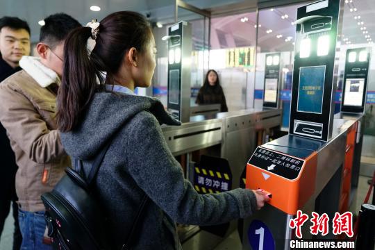 11月2日,青海西宁火车站乘客刷身份证进站乘车。中国铁路青藏集团有限公司自本月起选取西宁至门源间D8901/2、D8903/4、D8905/6次旅客列车试行电子客票业务,据了解,凡使用身份证原件(中华人民共和国二代居民身份证),通过12306网站或手机APP购买以上车次全价(成人票)的旅客,在当日乘车时无需换取纸质车票,使用电子客票就可直接通过自动检票机识读身份证的方式验证候车及进、出站检票。