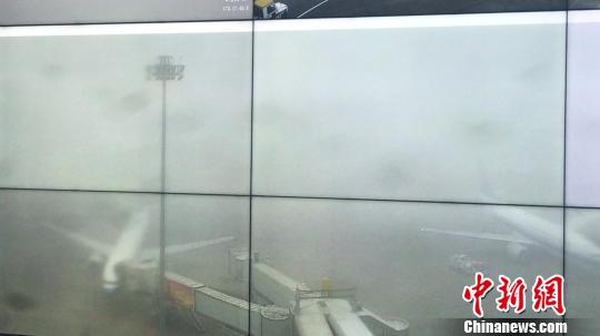 乌鲁木齐国际机场停机坪飞机被大雾包围。何永贤 摄