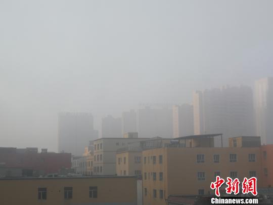 当日,乌鲁木齐城区出现大雾天气,楼宇被浓雾包围。