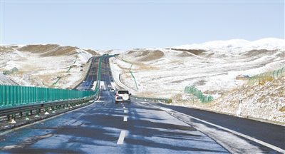 通往果洛草原的高速公路成为冬季草原上最美的风景之一。
