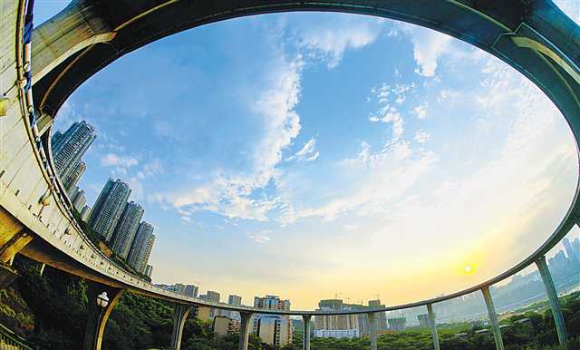 一部《星际穿越》电影。巴山渝水,两江相拥。山是城的形,水是城的脉,桥是城的骨。南岸以主城制高南山为坡度,层级而下及至两江交汇,山、路、桥立体交融。驾车穿行其中,仿佛进入电影《星际穿越》中的五维世界,来了一次星际穿越。