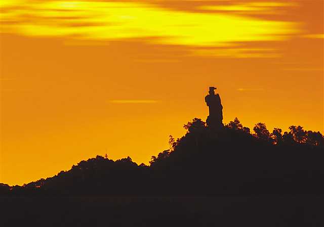 一幅“太极八卦”图。从南岸弹子石广场放眼看去,两江环抱下,一青一黄的江水,在朝天门码头泼染出太极八卦一般的水墨画卷。传说受此启发,聪明的重庆人也发明了南北皆宜的鸳鸯火锅。