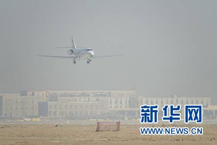 新华网北京1月23日电(钱春弦)22日10时10分,一架奖状680校验飞机平稳地降落在北京大兴国际机场西一跑道上,留下了第一道飞机轮胎印迹。