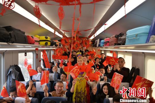 在兰州西至重庆北的D752次“复兴号”动车组列车上,兰州客运段为旅客奉献了一场精彩的“春晚”。 田多伟 摄