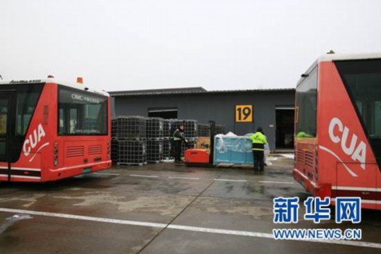 南苑机场的摆渡车准备运送旅客。新华网 钱春弦 摄