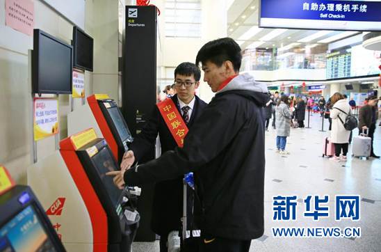 旅客宋君阳正办理自助值机。新华网 钱春弦 摄