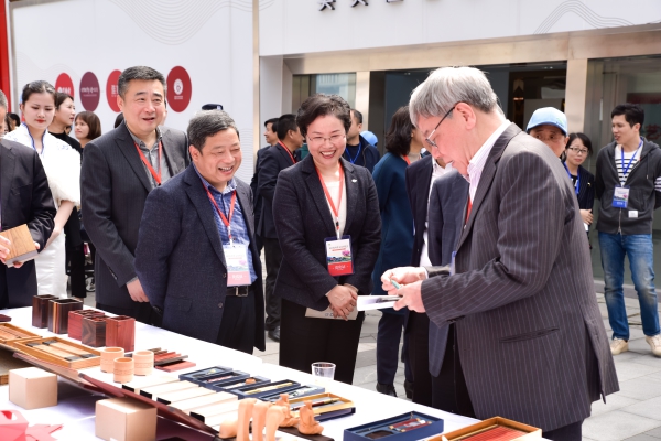 龙坞茶镇九街上的茶文化创意产品吸引嘉宾驻足