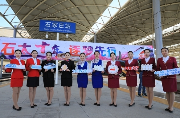 据石家庄客运段首批值乘石太客运专线的工作人员介绍,为满足旅客不断升级的服务需求,带给旅客更好的出行体验。十年来,他们在不断的探索实践中,形成了石太高铁“十大特色服务法”,如重点旅客全程关爱服务、气象信息提示服务、无线上网指南服务、票证核验无干扰服务、旅客突发疾病救助服务、哺乳妈妈私密空间服务、动车组列车节日庆祝服务、补票到座及时服务、网络订餐及时送达服务等;还针对旅客通过石太客运专线太行山特长大隧道(隧道下行线全长27839米,上行线全长27848米)常伴随耳鸣情况,研究出应对耳鸣的有效方法。