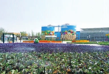 “这两个能源罐高约11米,是为温室大棚提供能源用的。”百蔬园艺术总监唐泽慧说,“十余人的团队用了一个月,纯手绘完成了罐子上的图案。”