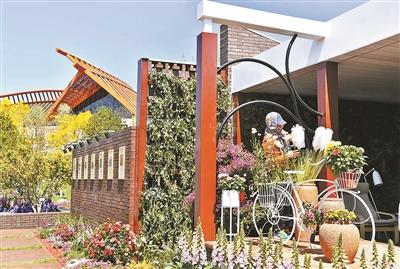 伴随着“天津日”的举行,天津园以五大道特有建筑形式构建的入口门廊、强化厚重的青砖墙与纤细的白木条搭成的听水空间以及怒放如织缎的绣球花卉等,引来众多观众驻足欣赏。