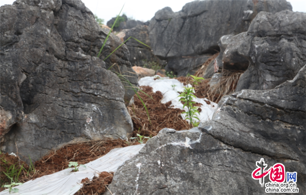 中国网5月15日讯 5月14日,在湖南省隆回县西洋江镇桃梨村枫木岭水晶桃特色产业园,满山怪石嶙峋的石缝中一片生机盎然,一株株烤烟、桃树、玉竹茁壮成长。