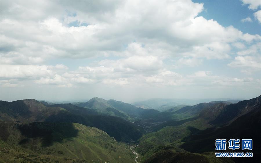 这是分水岭夏日景色(5月21日无人机拍摄)。 海拔2980米的分水岭位于甘肃省定西市漳县和渭源县交界处,是黄河两大支流渭河水系和洮河水系的界岭,被当地人称为“山路十八弯”的国道212线蜿蜒其中,沿途景色怡人。 新华社记者 陈斌 摄