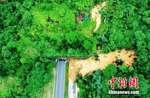 无人机航拍下的大广高速江西新余境内河下隧道入口外山体塌方画面。文/沈君 姚雅君 图/钟小明