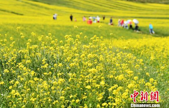 资料图:甘肃张掖民乐县扁都口油菜花。 杨艳敏 摄