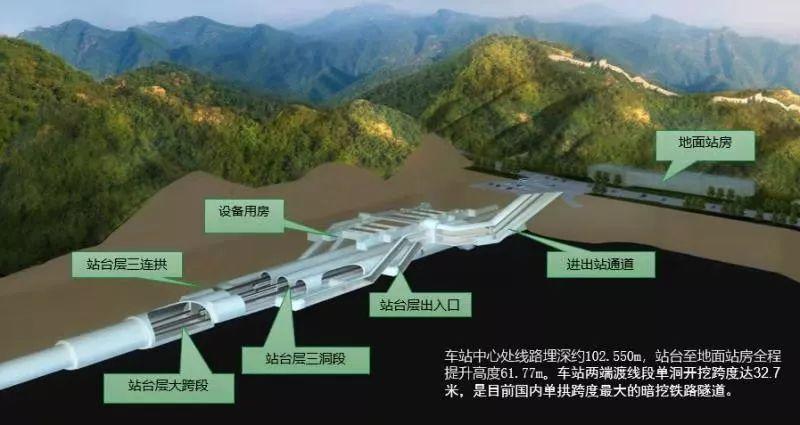 “新建车站总建筑面积4.88万平方米,为最大限度减少对环境的影响,主体站房全部放在地下,建筑面积3.98万平方米。”中铁五局京张三标项目部党工委书记贾友文说,建成的八达岭车站埋深达102米,是国内最大、也是京张高铁唯一的地下站房。