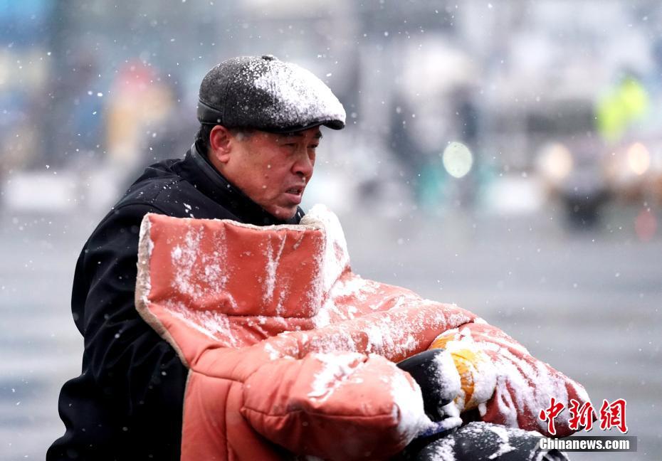 12月16日,北京迎来大雪天气,市民冒雪出行。北京市气象台15日发布了暴雪蓝色预警和道路结冰黄色预警信号。中新社记者 张兴龙 摄